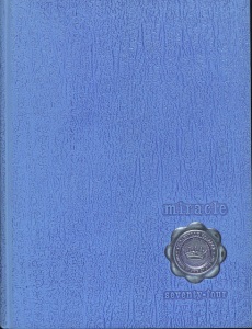MIRACLE STAFF 1974 Phil Hayes, Sports Editor; Ruth Gruenberg, Business Manager and Artwork; Debbie Conrad, Portraits Editor; Holly Detrick, Clerical; Debbie Vansickle, Typist; Penny Linger, Layout; Bonnie Dedrick, Ads Editor; Nancy Price, Layout and Clerical; Molly Rehn Editor. Not Pictured — Craig Danielson,Layout.